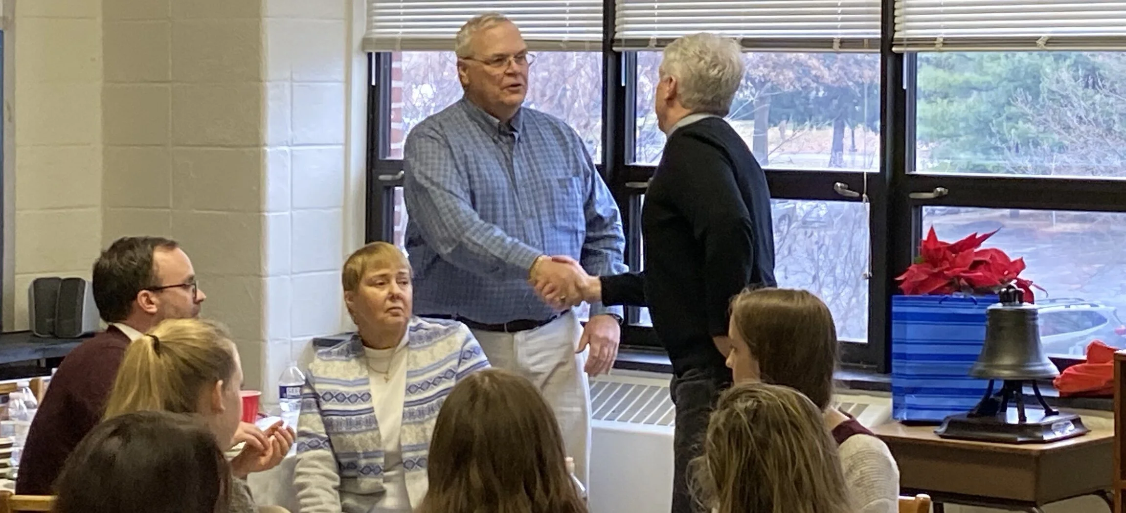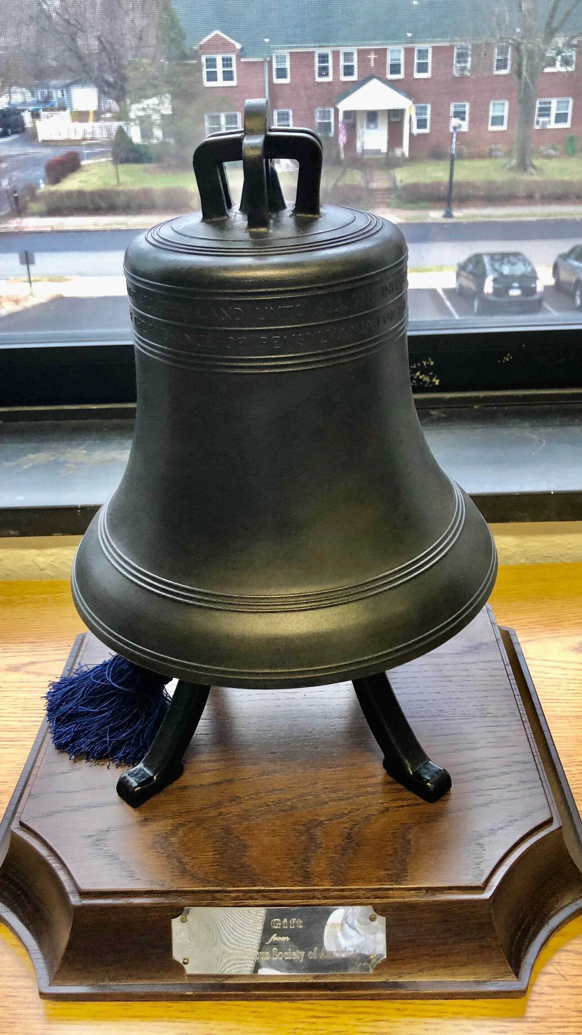 Today, that journey from South Philly to Poland and the Vatican brought the Nelsons to Martin Saints. They left two gifts behind at school today: a beautiful and rare bronze scale model of the Liberty Bell, and a check for $25,000. Our board president, Deacon Roberts, and our student council president, Felicity, warmly thanked the Nelsons for their generosity.